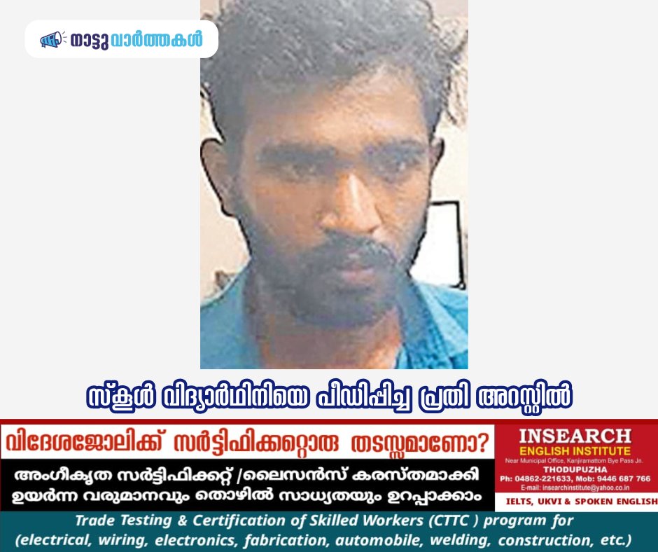 ഇടുക്കി: പതിനാറുകാരിയായ സ്കൂൾ വിദ്യാർഥിനിയെ സമൂഹമാധ്യമങ്ങളിലൂടെ പരിചയപ്പെട്ട ശേഷം ലൈംഗികമായി പീഡിപ്പിച്ച കേസിൽ ഇടുക്കി സ്വദേശിയെ പൊലീസ് അറസ്റ്റ് ചെയ്തു. പീരുമേട് കരടിക്കുഴി പട്ടുമുടി എസ്റ്റേറ്റ് ഹൗസ് നമ്പർ 189-ൽ കുമാർ (23)യാണ് അറസ്റ്റിലായത്. സമൂഹ മാധ്യമം വഴി പരിചയപ്പെട്ട ശേഷം പെൺകുട്ടിയെ വിവാഹ വാഗ്ദാനം നൽകിയാണ് 2023 സെപ്റ്റംബർ മുതൽ ഒരു വർഷക്കാലം പീഡിപ്പിച്ചതെന്ന് പൊലീസ് പറഞ്ഞു.