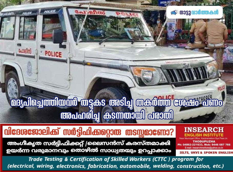 ഇടുക്കി : കൂട്ടാറിൽ മദ്യപിച്ചെത്തിയ സംഘം തട്ടുകട അടിച്ചു തകർത്ത ശേഷം പണം അപഹരിച്ചു കടന്നതായി പരാതി. നെടുങ്കണ്ടം കമ്പംമെട്ട് അന്തർ സംസ്ഥാന പാതയിൽ കൂട്ടാറിന് സമീപം ഒറ്റക്കടയിൽ പ്രവർത്തിക്കുന്ന ബിസ്മി തട്ടുകടയിലാണ് മദ്യപസംഘം ആക്രമണം നടത്തിയത്. കടയുടമയ്ക്കും ഭാര്യക്കും മർദനമേറ്റു. നെടുങ്കണ്ടം താലൂക്ക് ആശുപത്രിയിൽ ദമ്പതികൾ ചികിത്സ തേടി. ഭർത്താവിനെ മർദിക്കുന്നത് കണ്ട് തടയാൻ എത്തിയ ഭാര്യ റെജീന ബീവിയെ അക്രമിസംഘം ചവിട്ടി നിലത്തിട്ട് മർദിച്ചതായും പരാതിയുണ്ട്. രണ്ടംഗസംഘം ഭക്ഷണം കഴിച്ചശേഷം പണം നൽകുന്നതുമായി ബന്ധപ്പെട്ട് തർക്കമുണ്ടാകുകയായിരുന്നു. തുടർന്ന് കടയിൽ ഉണ്ടായിരുന്ന വസ്തുക്കളും ഭക്ഷണ സാധനങ്ങളും അടിച്ചു തകർത്തു. കട ഉടമയായ എം.എം. നൗഷാദിനെ നിലത്തിട്ട് മർദിച്ചു. ഇയാളുടെ ശരീരമാസകലം മർദനമേറ്റു. നൗഷാദിൻ്റെ കാലിന് പൊട്ടലുമുണ്ട്. യാതൊരുവിധ പ്രകോപനവും ഇല്ലാതെയായിരുന്നു ആക്രമണമെന്നും പണപ്പെട്ടിയിൽ നിന്നും 10,000 ത്തിലധികംരൂപ അപഹരിച്ചതായും നൗഷാദ് പറഞ്ഞു. കമ്പംമെട്ട് പോലീസ് കേസെടുത്ത് അന്വേഷണം ആരംഭിച്ചു.