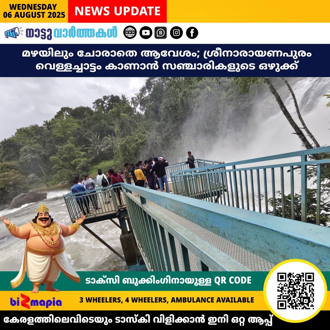 മഴയിലും ചോരാതെ ആവേശം; ശ്രീനാരായണപുരം വെള്ളച്ചാട്ടം കാണാന് സഞ്ചാരികളുടെ ഒഴുക്ക്