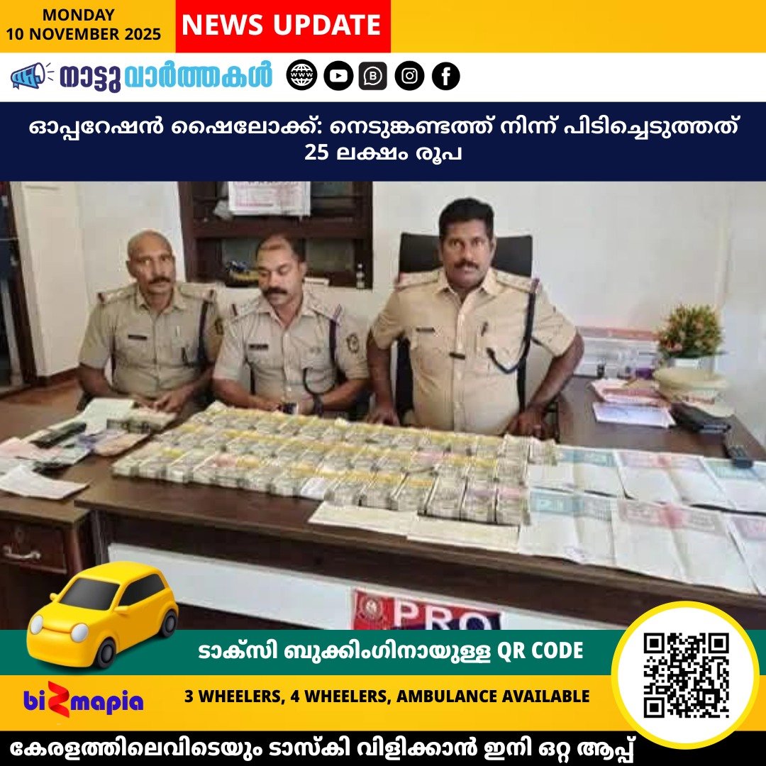 #newsupdate #latestnews #newshour #newslive #live #livevartha #nattuvarthakal #viralnews #operation #Shylock #25lakh #nedumkandam #idukki